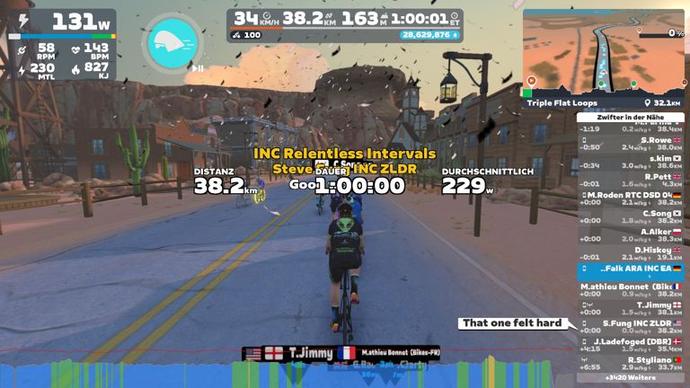 Zwift - Group Ride: INC Relentless Intervals (C) on Triple Flat Loops in Watopia