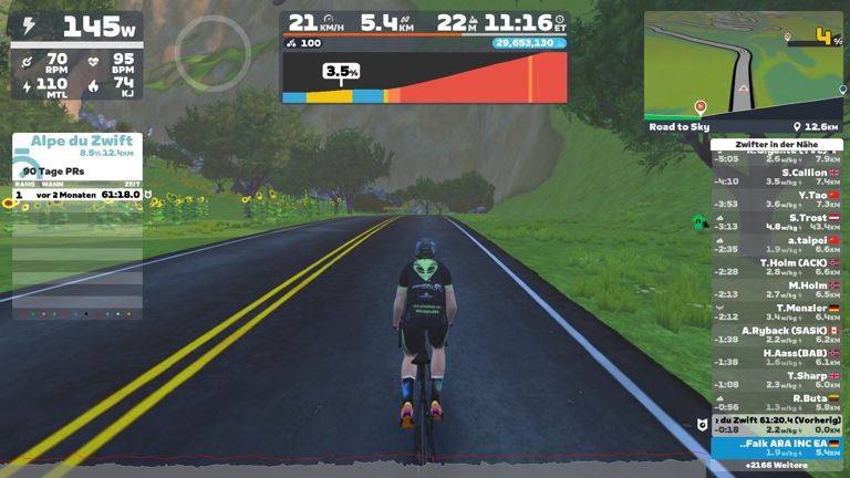 | Alpe du Zwift | 12.2 km | 01:19:40 | 8.5 % |
