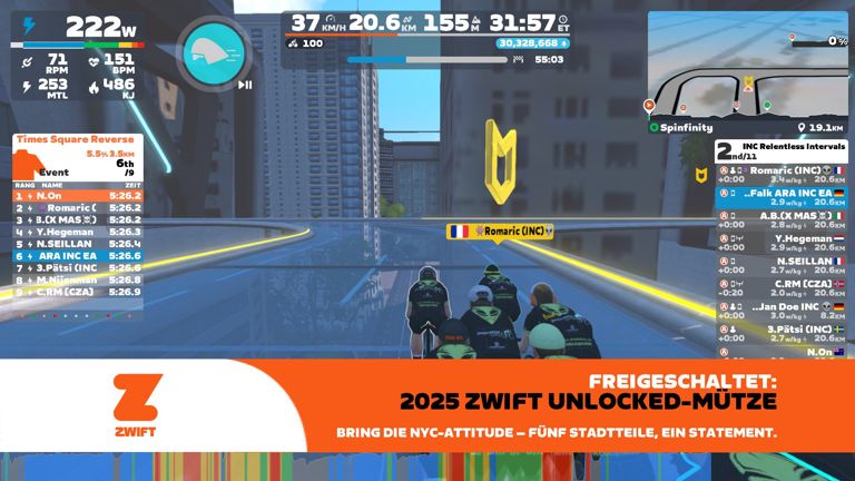 Zwift - Group Ride: INC Relentless Intervals (A) on Spinfinity in New York