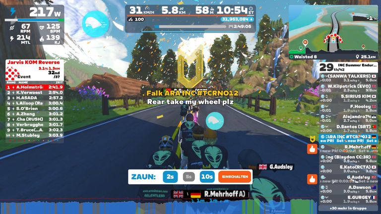 - Ø Kadenz67 rpm