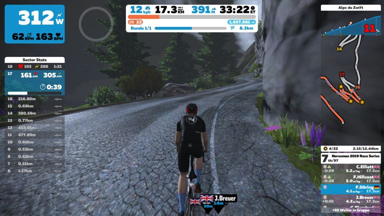| Alpe du Zwift | 12.2 km | 00:51:39 | 8.5 % |