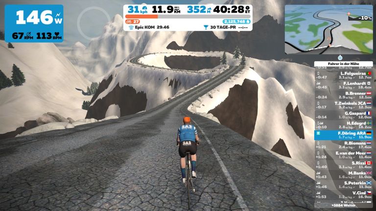 | Epic KOM | 9.4 km | 00:36:24 | 3.9 % |